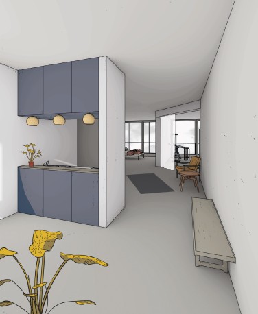 Eine zukunftsweisende Architektur muss die Attraktivität urbanen Lebens erkennen und gezielt in moderne Wohnsituationen übertragen. Der Masterplan des Werksviertels in München umfasst neben einer breiten Umnutzung vorhandener Bestandsgebäude, einen Ausbau des ehemaligen Industrieviertels in einen attraktiven und belebten Stadtteil. Wie auch das Quartier, befinden sich die Anforderungen und Nutzerprofile im Wohnungsbau in einem stetigen Wandel. Neben Mischformen aus Wohnen und Arbeiten, erleben auch gemeinschaftlich geprägte Wohnkonzepte eine Renaissance. Im Entwurf für ein neues Wohnen kann es somit nicht mehr um ein Haus für ein bestimmten Benutzertypus respektive für eine bestimmte Wohnform gehen. Vielmehr liegt die Herausforderung darin, Grundrisse und Wohnungen zu entwerfen, die offen für verschiedene Lebensmodelle und Nutzergruppen sind.